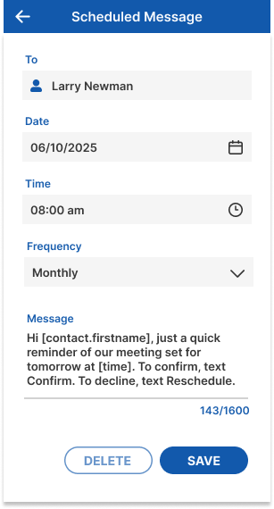 Empower advisors with tools that save time and improve client engagement. Pre-approved templates, scheduled messaging, and automated appointment reminders reduce administrative burden while ensuring consistent communication. With a 98% text open rate, advisors can connect more effectively with clients.
